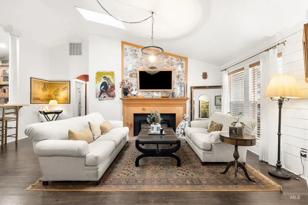 Nestled on a large corner lot within one of Emmett’s most welcoming neighborhoods, this 4 bedroom 2 bath offers a rare blend of artistic character and modern functionality. Inside, the heart of the home is defined by vaulted ceilings, custom pillars and an abundance of natural light, amplified by two custom, stunning skylights. The kitchen boasts custom shelving and beautiful wood cabinetry that maximizes storage. This floor plan includes 4 spacious rooms, one with custom built ins, perfect for remote work or a fourth bedroom space. The transition to outdoor living is seamless, leading to a backyard oasis equipped with dry kitchen and entertaining area. Whether you are hosting a summer gathering or enjoying the privacy of your own backyard, this home provides the ultimate Idaho lifestyle. Complete with a two-car garage and front yard sprinklers.
