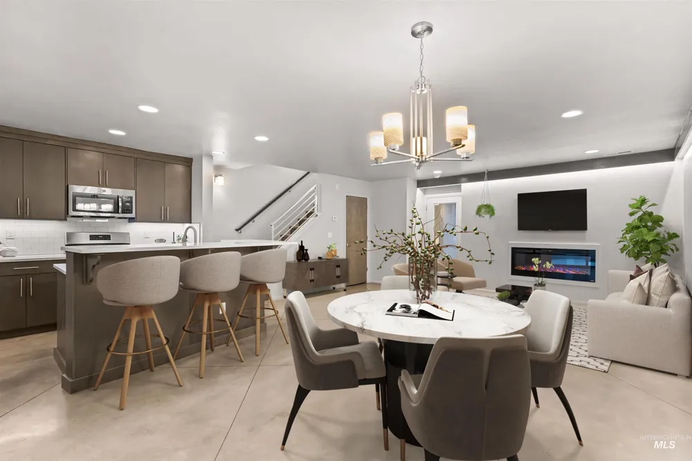Perfectly positioned with quick access to downtown Boise, Garden City, and Eagle, this highly desirable Carlton Bay residence offers a low-maintenance, lock-and-leave lifestyle without sacrificing space, versatility, or quality. This thoughtfully designed two-story home features 1,683 square feet with 3 bedrooms and 3 bathrooms, showcasing a functional, well-balanced layout reflective of its semi-custom build and intentional design. A distinctive front-entry space on the main level is zoned for mixed use, providing exceptional flexibility for use as a bedroom, private office, studio, or live/work arrangement while remaining seamlessly integrated into the residential flow of the home. Light-filled interiors, clean architectural lines, and purposeful separation of spaces create an inviting environment that feels both refined and adaptable. Zoned mixed-use and successfully operated as a long term rental for over eight years, the property offers both lifestyle appeal and long-term investment potential. Enjoy close proximity to the Boise River Greenbelt, local wineries, dining, and outdoor recreation, with convenient access to commuter routes and nearby trails. An exceptional opportunity in one of Garden City’s most established and sought-after communities.