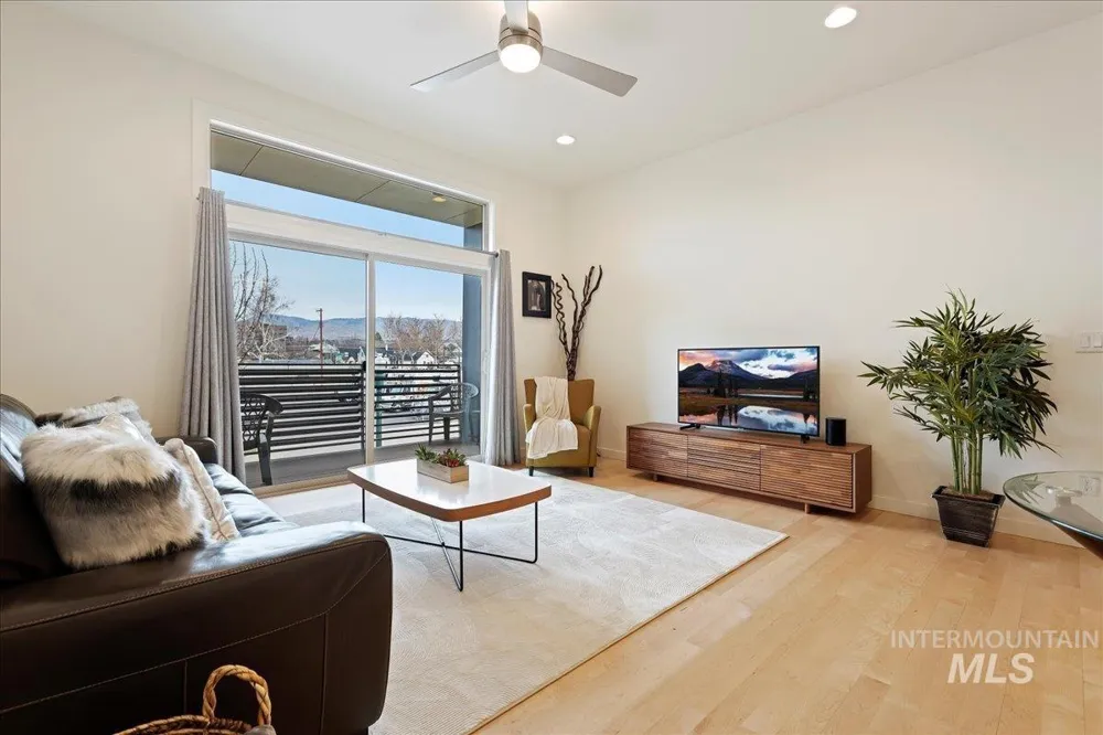 Location, location! Experience downtown Boise living at its best in this urban modern townhouse nestled in the heart of the historic Linen District. Enjoy unbeatable access to coffee shops, brew pubs, grocery stores, & the Boise Greenbelt—just minutes from your front door. Perfectly positioned to enjoy the energy of the city while offering a peaceful retreat just beyond the hustle & bustle. Designed for low-maintenance living, this open concept home offers excellent live/work flexibility or a turn-key investment opportunity. Previously a successful VRBO. Vaulted ceilings, gorgeous hardwood floors, abundant natural light, and designer finishes create a bright, modern feel throughout. The main level features a welcoming gathering room, a bedroom with walk-in closet, a stylish bathroom, under counter lighting and a tub/shower. Upstairs, the spacious great room showcases quartz countertops, custom cabinetry, stainless steel appliances, ceiling fans, seamlessly connecting the kitchen, dining, & living area. Step out onto the balcony to entertain & take in foothill views. Master suite features double vanity & walk-in shower Additional highlights include a private back patio, single-car garage, and impeccably maintained throughout. Located just a short distance to the Boise River, Boise Greenbelt, & Quinn’s Pond, this home delivers the ultimate urban lifestyle with comfort and convenience.