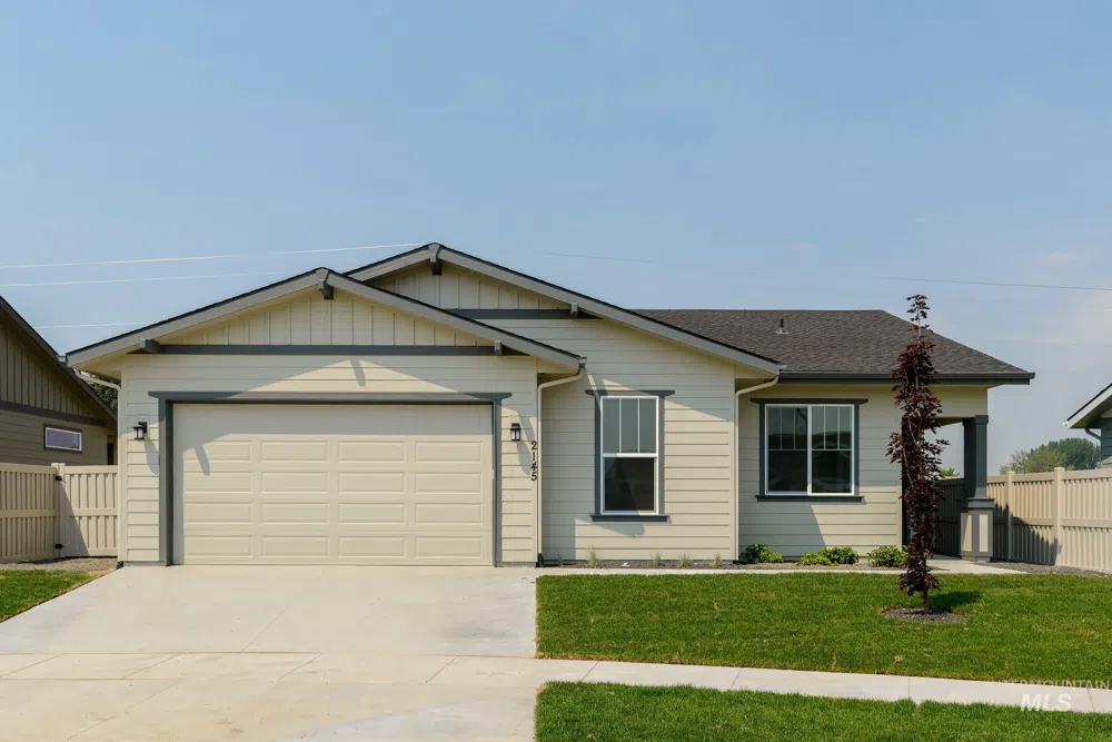 "The Collins" is an artful combination of thoughtful design and chic touches. The great room and casual dining area are central to the covered patio and well-appointed kitchen complete with an oversized center island with breakfast bar, wraparound counter and cabinet space, stainless steel appliances and quartz countertops. Complementing the serene primary bedroom suite is a spacious walk-in closet and an appealing primary bath with a dual-sink vanity, and tile shower. Secluded secondary bedrooms feature sizable closets and a shared hall bath. Additional highlights include easily-accessible laundry off the everyday entry and additional storage throughout. Front and rear landscape is included. BTVAI