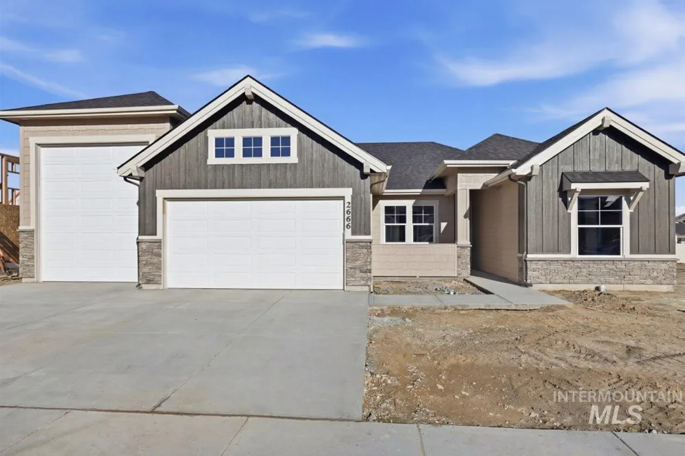 Introducing The Denali by Sunrise Home! This thoughtfully designed single-level residence offers an open-concept layout, ideal for entertaining. The great room stands out with its impressive 10-foot coffered ceilings accented with beams and large windows, allowing natural light to flood the main living areas. Designed with functionality in mind, the split-bedroom floor plan includes three spacious bedrooms and a generous office/bonus space. The kitchen is a chef’s dream, featuring custom cabinetry with plenty of storage, quartz countertops, a full-tile backsplash, stainless steel appliances, and a sizable walk-in pantry. The primary suite is a true retreat, complete with dual vanities and a beautifully tiled walk-in shower. The home also has an oversized 42-foot deep RV bay, providing ample space for all your storage needs, and 1,100 sq. ft. of garage space! Step outside to enjoy fully landscaped front and back yards with an automated sprinkler system. Nestled in Emmett’s Highland Subdivision